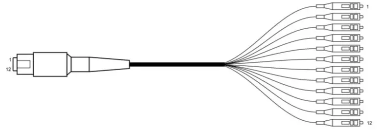 - Conjuntos de cables troncales o latiguillos con derivación a conectores de fibra individuales