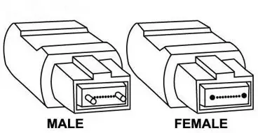 Los conectores MPO son de dos tipos: Macho y Hembra. El conector macho tiene dos clavijas guía que sobresalen de la férula, y el conector hembra tiene orificios para estas clavijas. Esta característica permite conectar diferentes tipos de conectores entre sí.